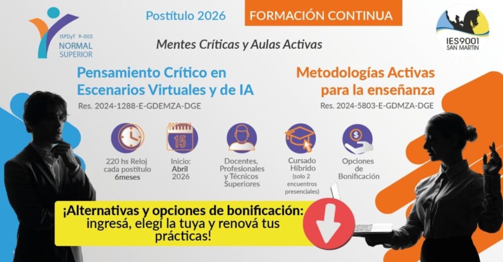 El Instituto de Educación Superior 9-001 Gral. José de San Martín invita a sus docentes a participar de la Propuesta Formativa Institucional «Modalidad Combinada en Educación Superior: Dominando las Plataformas Institucionales», que se desarrollará a partir del 13 de mayo. Esta formación tiene como objetivo fortalecer las competencias digitales y pedagógicas necesarias para implementar estrategias de enseñanza en modalidad combinada, aprovechando al máximo las herramientas institucionales disponibles. Saber más